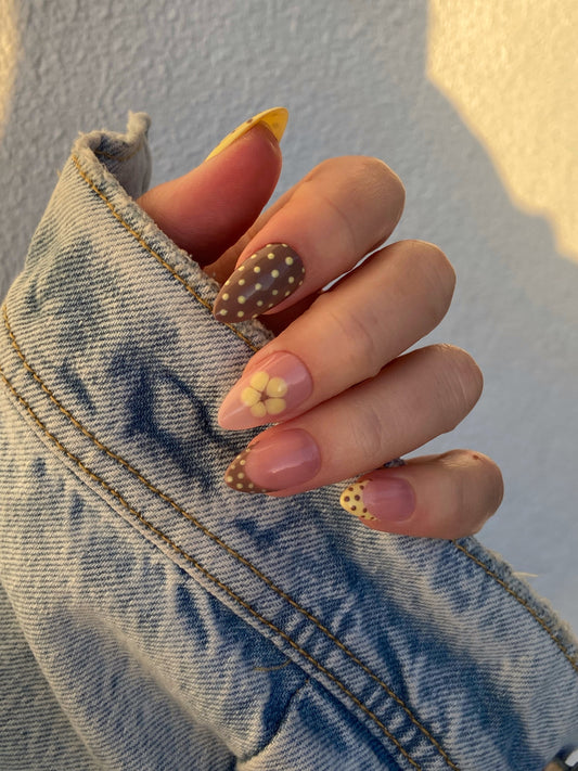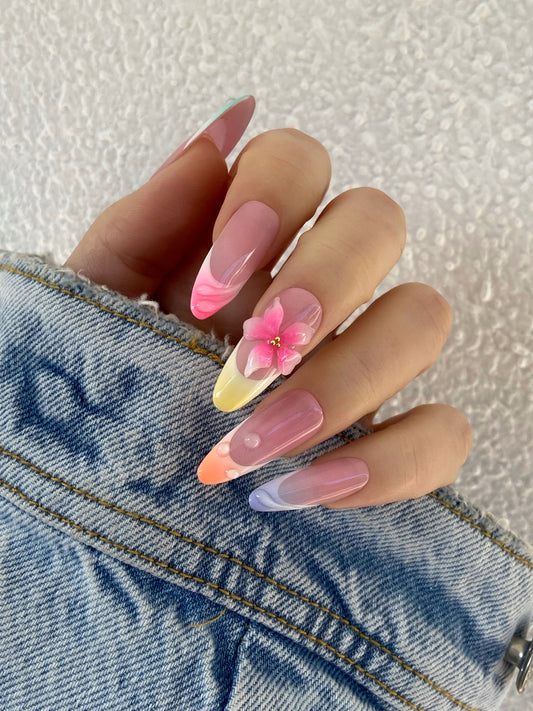 Laissez éclore la beauté au bout de vos doigts avec notre collection printanière, véritable hymne aux fleurs et à la douceur. Des nuances de pastel à l'exotisme vibrant, chaque set est une invitation à célébrer le renouveau. Des créations artisanales faites main pour embellir vos mains avec une délicatesse florale unique. Aura, fleurs et couleurs : trouvez votre bouquet parfait chez By Leticia.